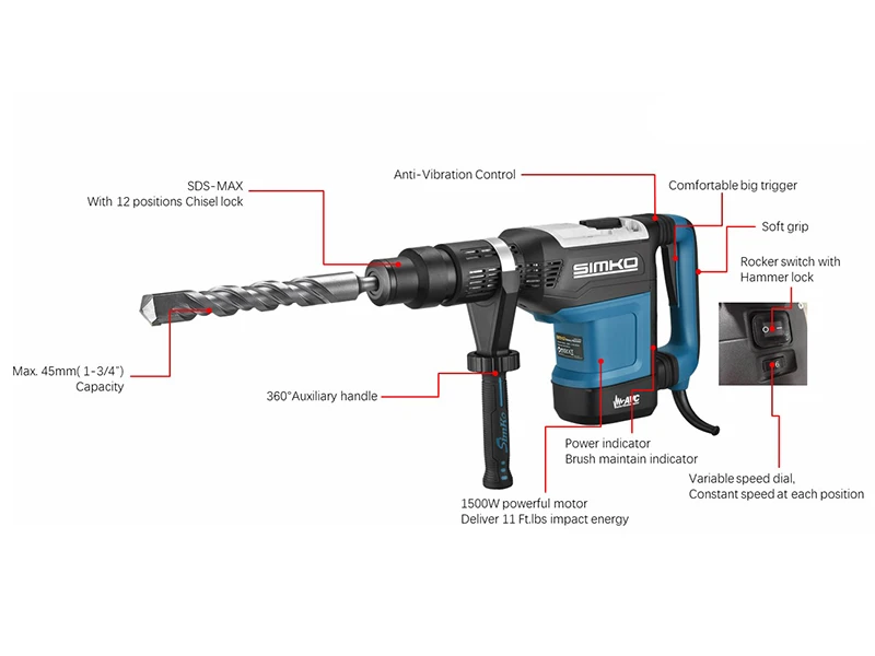 ● 6档设定旋钮+恒速控制,可无级调节速度与冲击频率,实现最佳性能。